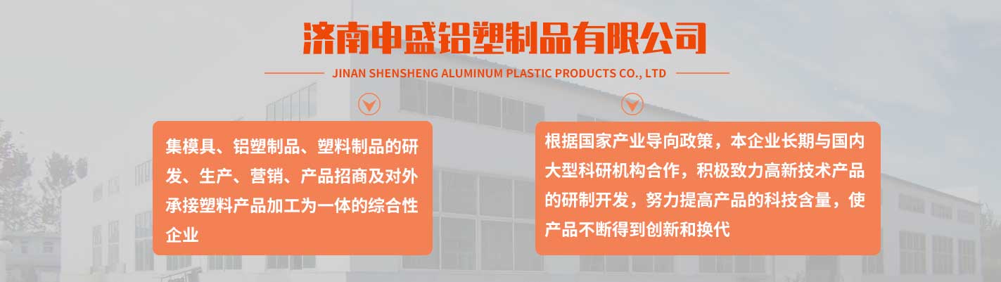 濟(jì)南申盛鋁塑制品有限公司,座落在濟(jì)南市長清區(qū)工業(yè)園,占地十余畝。是一家集模具、鋁塑制品、塑料制品的研發(fā)、生產(chǎn)加工、營銷、產(chǎn)品招商、對(duì)外承接塑料產(chǎn)品加工為一體的綜合性企業(yè)。根據(jù)國家產(chǎn)業(yè)導(dǎo)向政策,本企業(yè)長期與國內(nèi)大型科研機(jī)構(gòu)合作,積極致力高新技術(shù)產(chǎn)品的研制開發(fā),努力提高產(chǎn)品的科技含量,使產(chǎn)品不斷得到創(chuàng)新和更新?lián)Q代,市場(chǎng)銷量走在同行業(yè)的前列。